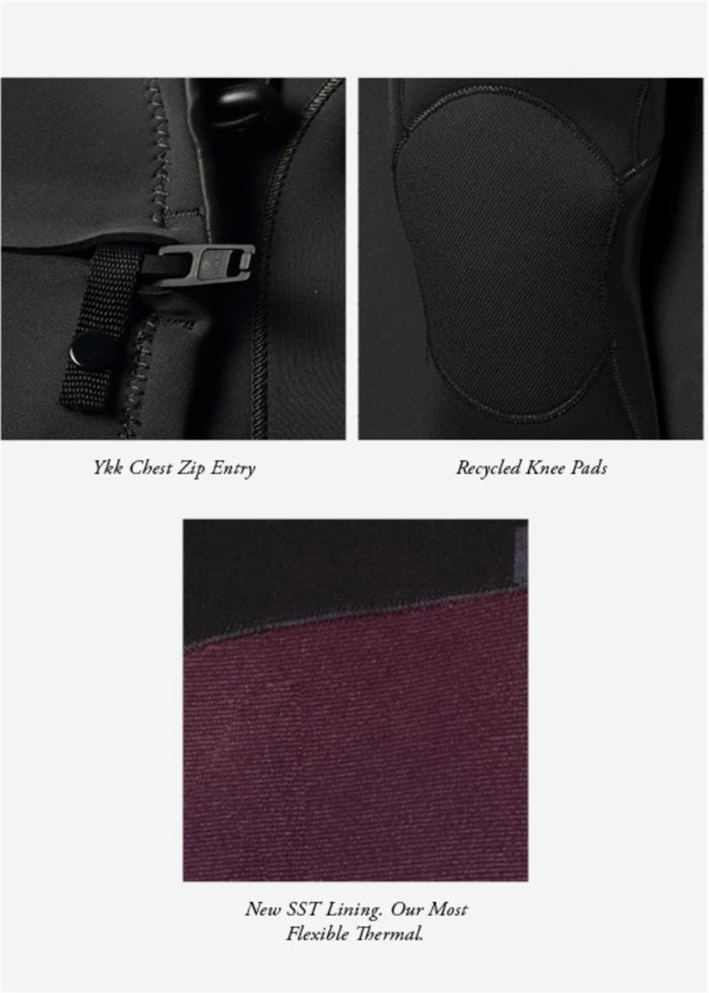 + DURABLE & WATER TIGHT • Chest-zip entry, minimal bulk with contoured water tight design • Tripled glued, blind stitched seams • Vissla’s super stretch Neo 3.0 tape at crotch, knees, and stress points allows for maximum seam sealing without compromising stretch and comfort. • Easy access secure key cord • Knee pad, Upcycled Supratex abrasion resistant for flexibility and strength • Liquid tape cuff seals to prevent flushing at cuffs • Glideskin on the neck seals to skin to prevent flushing