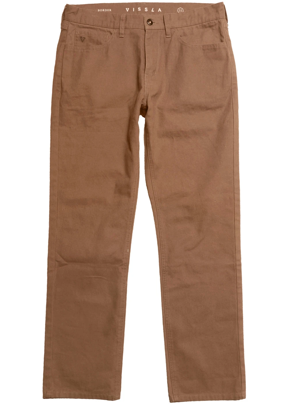 Relaxed modern fit 12oz canvas pant made from cotton with a 16’’ leg opening and 32’’ inseam. Chain stitch embroidered Vissla logo.