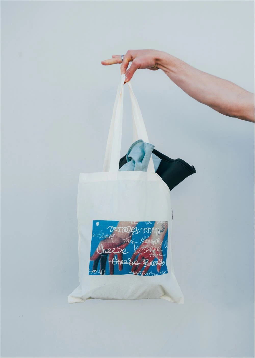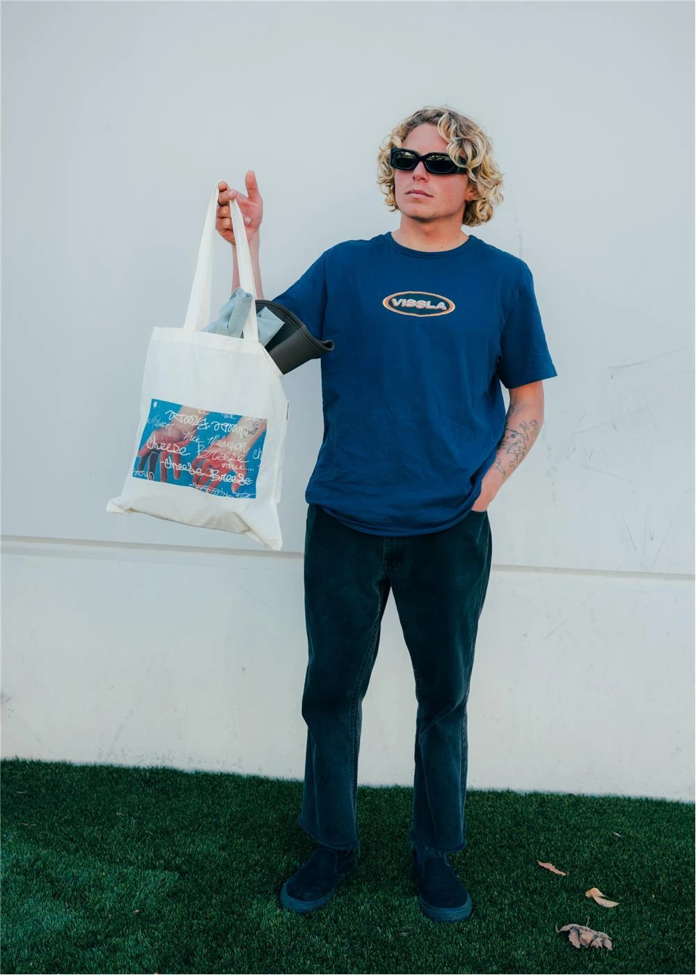 In celebration of the recent release of Cheese Breese, a surf film starring Nick Melanson, we produced a run of limited tees and totes featuring a frame grab from the film with scribbles via Thomas Campbell.