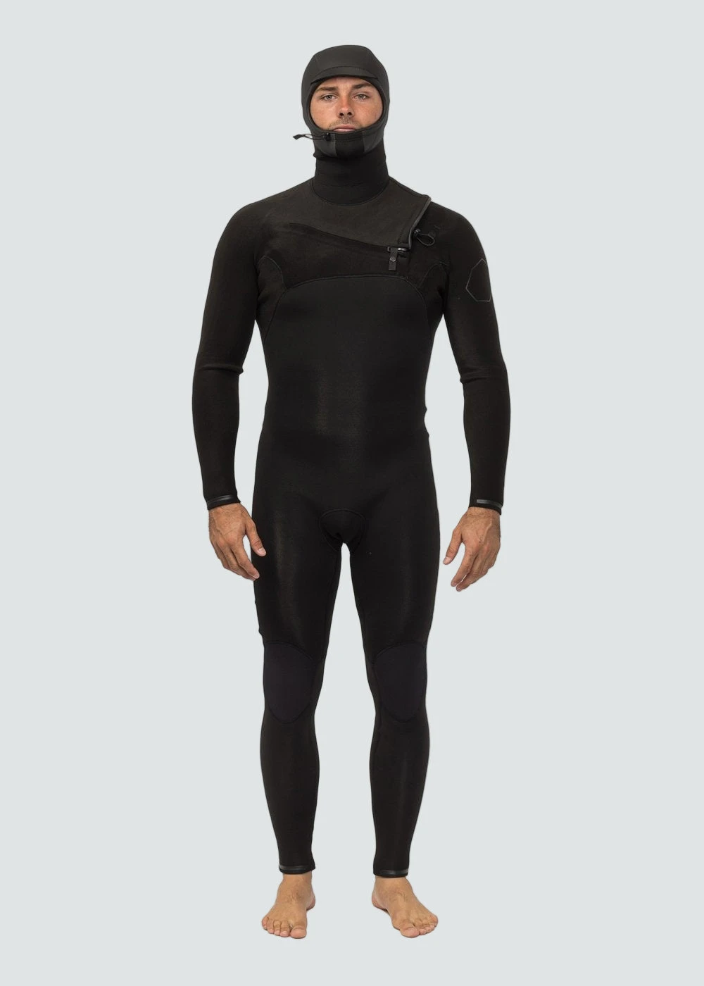 • Chest-zip entry, with Male and Female channel barrier to prevent flushing our most water tight design