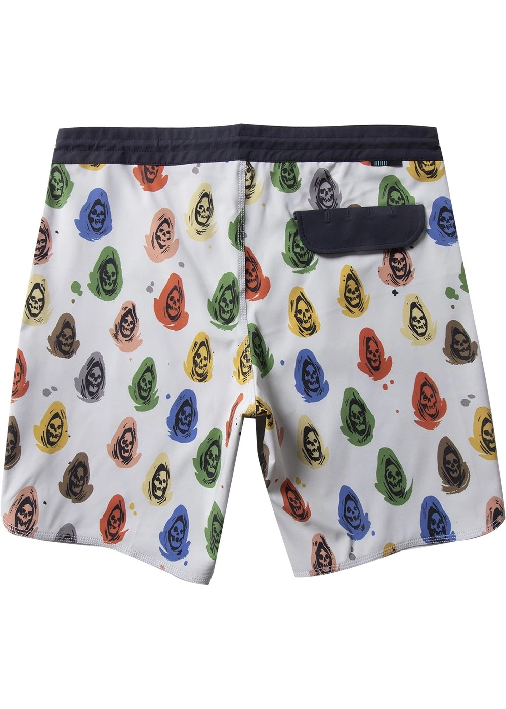 This season’s Lost Souls collection is derived from the haunted work of Nathan Kostechko, a multifaceted artist known for drawing some of the most radical tattoos in Southern California. The souls may be lost, but what we’ve found is artwork both bewitching and inimitable. Get loose in our 4-Way stretch boardshorts made from a premium blend of recycled polyester Repreve and coconut fibers. Styling includes a contrast waistband and pocket flap, scalloped hem back pocket with integrated key rope. 17″ outseam.