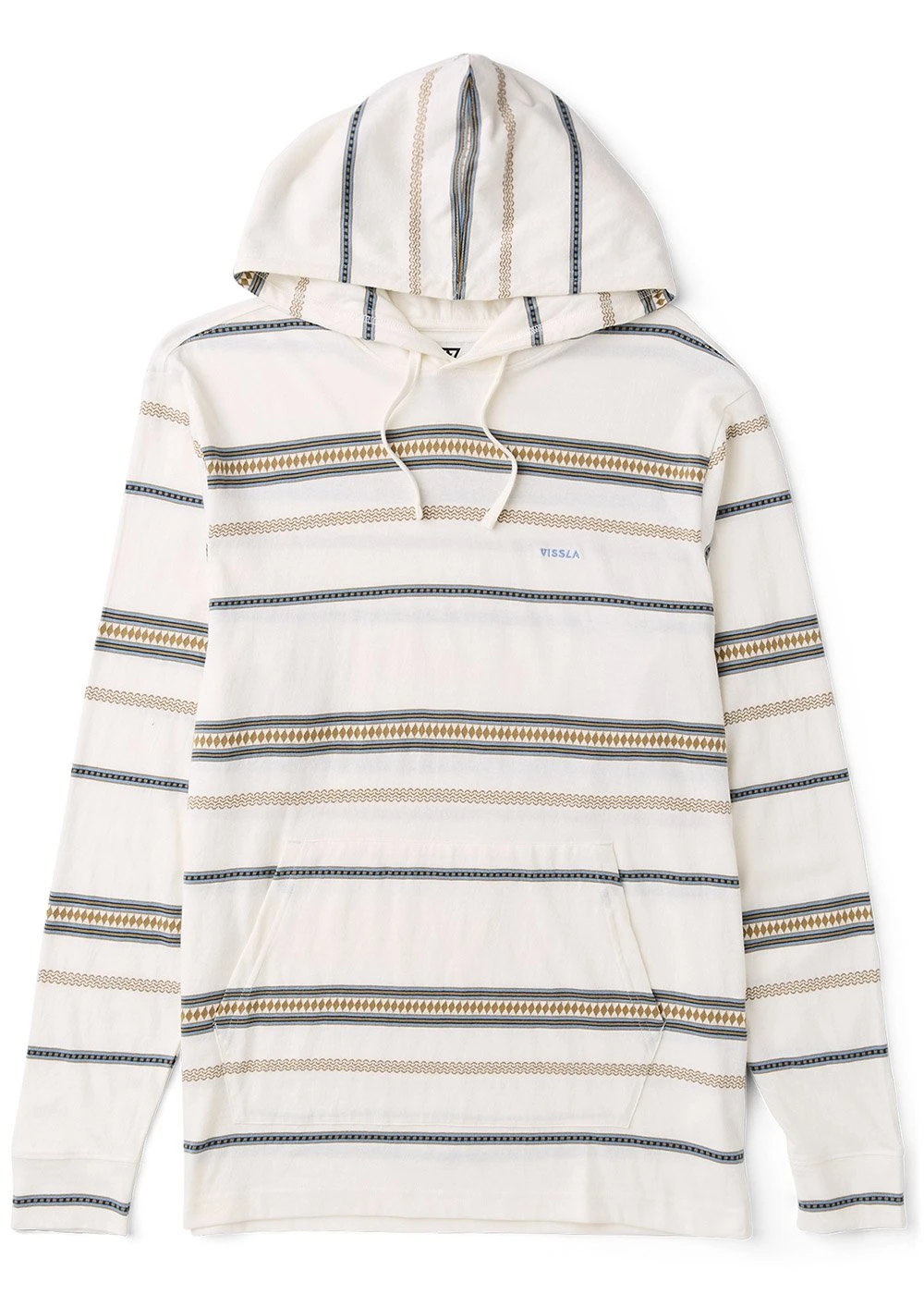 Sustainable stripes wrap you in hooded comfort. Thirty singles yarn-dyed striped construction creates authentic pattern variation, while the kangaroo hand pocket provides essential storage. Side seam woven label and Vissla chest embroidery add brand authenticity, enhanced by garment soft wash treatment for instant broken-in appeal.