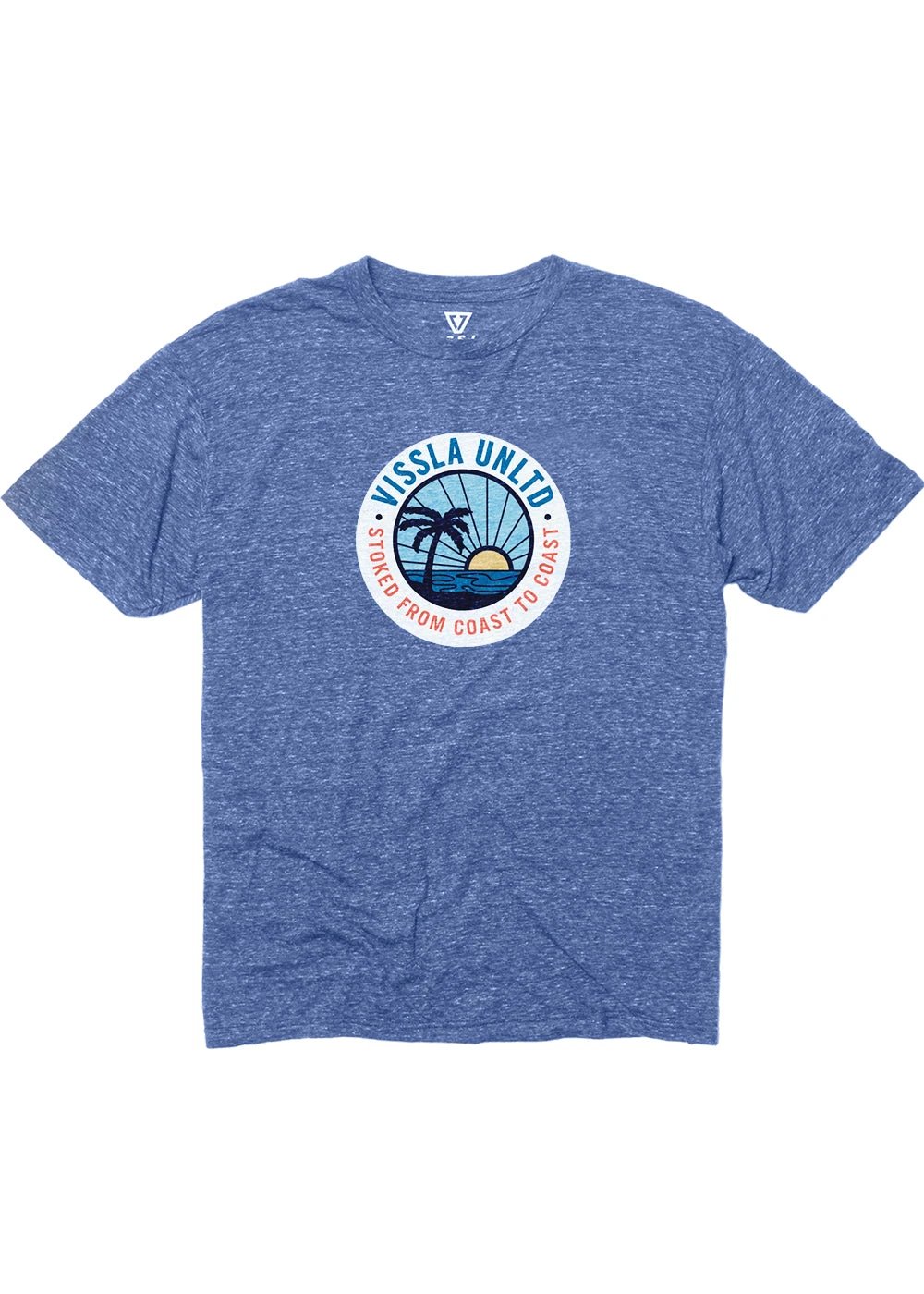 Sundown Kids Tee, a snow heather 30 singles regular fit tee with a super soft screen print. Sunset delight.